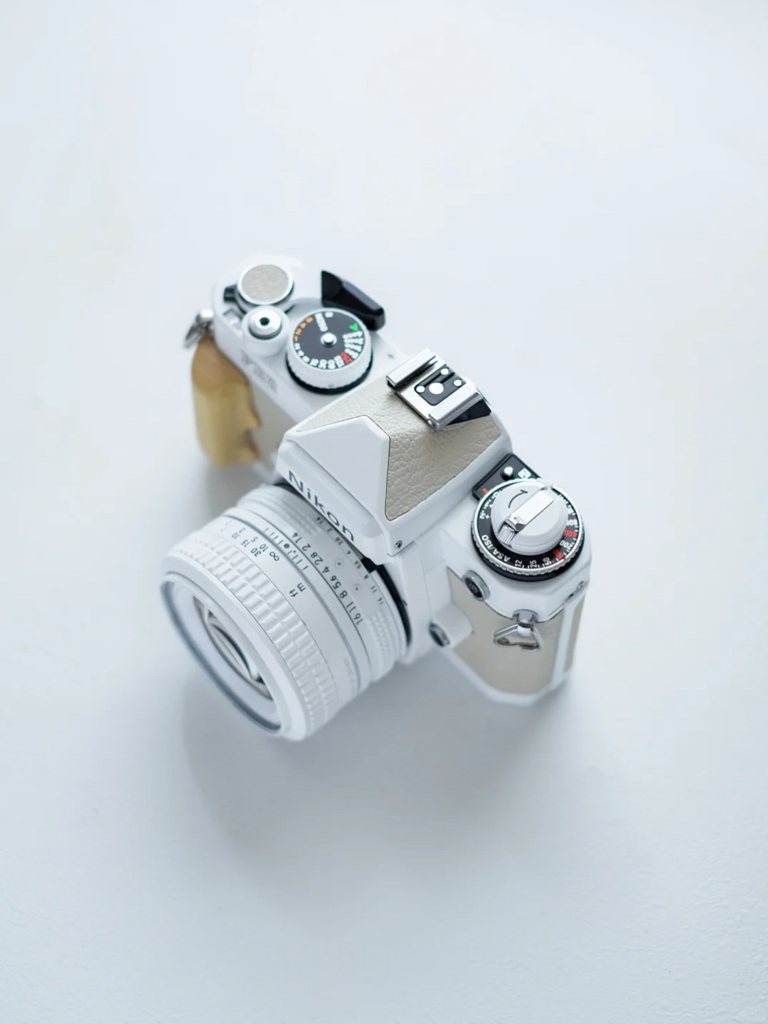 This camera has been reborn. We begin with a carefully selected, pre-owned Nikon FE2 body. The camera is then professionally restored, cleaned, and meticulously customized with our unique "White Birch" finish. Each camera is a one-of-a-kind piece that has been thoroughly tested to ensure it performs as beautifully as it looks. You are not just buying a camera; you are investing in a piece of photographic history, elevated with a fresh, artistic identity.