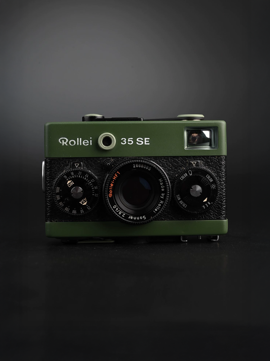 Inspired by the timeless design of classic field equipment and outdoor exploration gear, the Olive Green finish gives this legendary camera a rugged yet sophisticated character. It evokes a sense of adventure and durability, perfectly complementing the camera's compact, go-anywhere nature. This unique colorway transforms the Rollei 35 SE from a classic camera into a distinctive personal accessory.